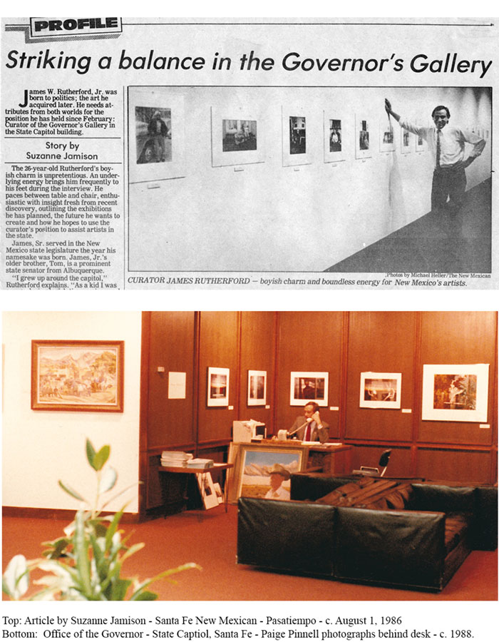 In the Spring of 1986 my friend and colleague Sandra D’Emilio, curator at the NM Museum of Fine Arts (now the NM Museum of Art), was asked by then Officer of Cultural Affairs, Clara Apodaca, if she could recommend anyone for the position of Director of the Governor’s Gallery – a program Apodaca had a special fondness for as she had been the one to create the Gallery when she was First Lady in the mid-1970s. D’Emilio later told me that she immediately thought of me since I had a unique combination of art world skills (as noted previously) and political background and connections as my brother Tom was a State Senator at the time and my father Jim had served in the House of Representatives.