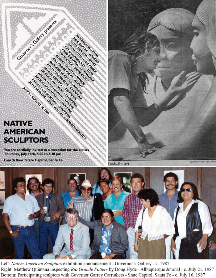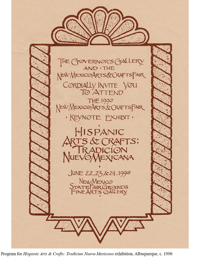 Perhaps the most high-profile exhibition from the Governors Gallery “On the Road” schedule was the keynote exhibit I co-curated with Victoria Plata from the Hispanic Culture Foundation for the 1990 New Mexico Arts & Crafts Fair (NMACF) at the NM State Fairgrounds Fine Arts Gallery entitled Hispanic Arts & Crafts: Tradicíon Nuevo Mexicana. As noted in our curatorial essay, the fifty-one artists selected for this exhibition represented a cross-section of “some of the finest traditional and contemporary Hispanic artists working today” and included many “art forms and imagery [that] are indigenous to New Mexico, often passed down through generations” as well new expressions that “broaden the definition of what Hispanic art is.” (Rutherford & Plata - click here to view essay >>)