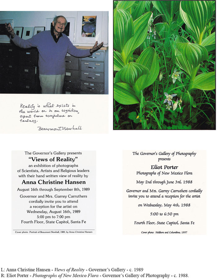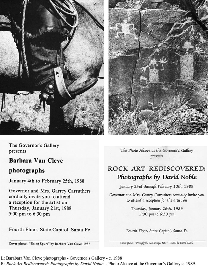 Exhibitions for photographers, Barbara Van Cleve, Walter Chappell, David Noble, Barbara Zusman, Ana Hansen, Paige Pinnell, Eliot Porter, Barbara Simpson, and others highlighted the creativity and diversity within the medium and spurred the decision to dedicate an additional space within the Governor’s Office confines (dubbed the “Governor’s Gallery Photography Alcove”) to stand-alone displays of photography.
